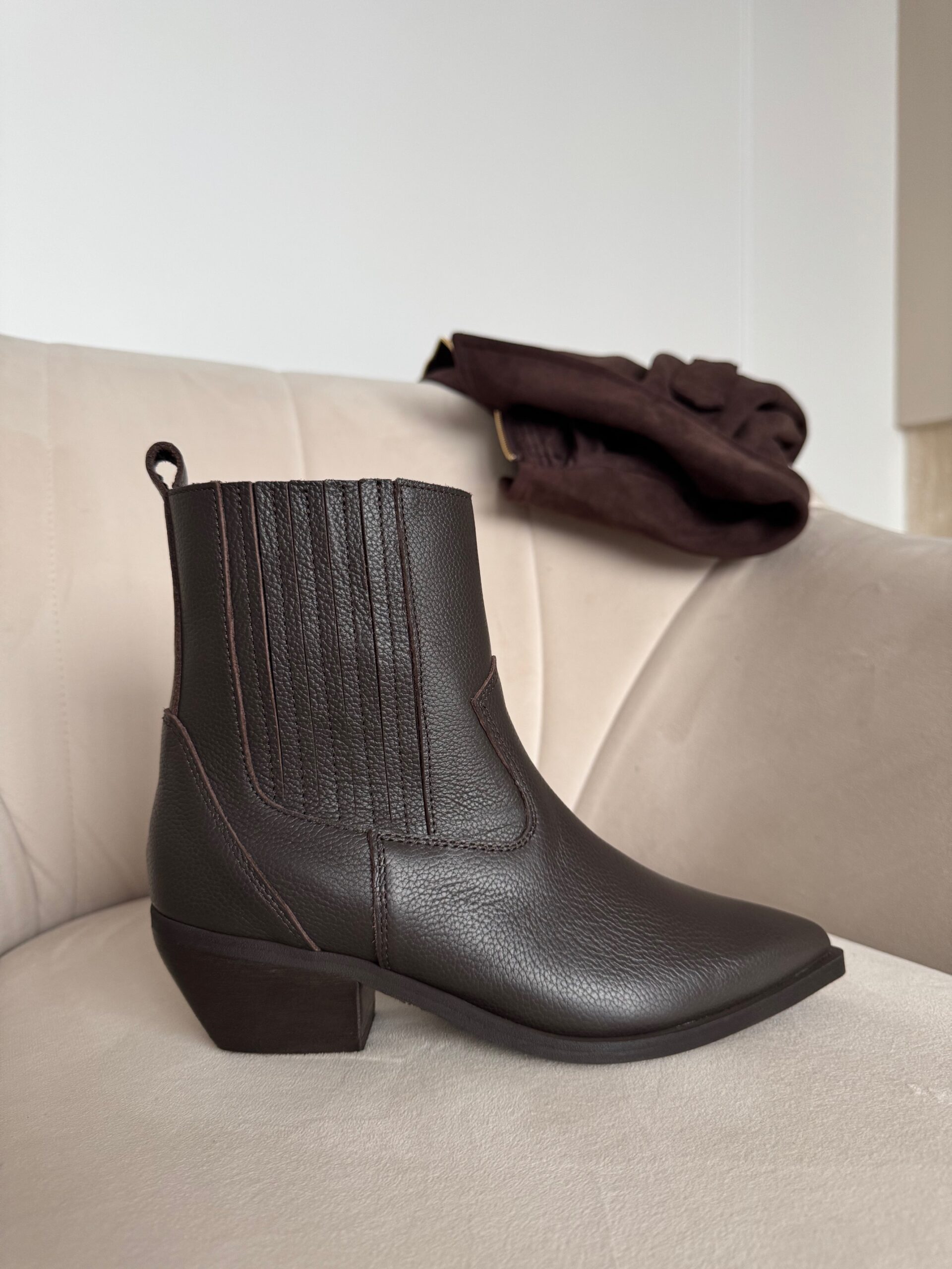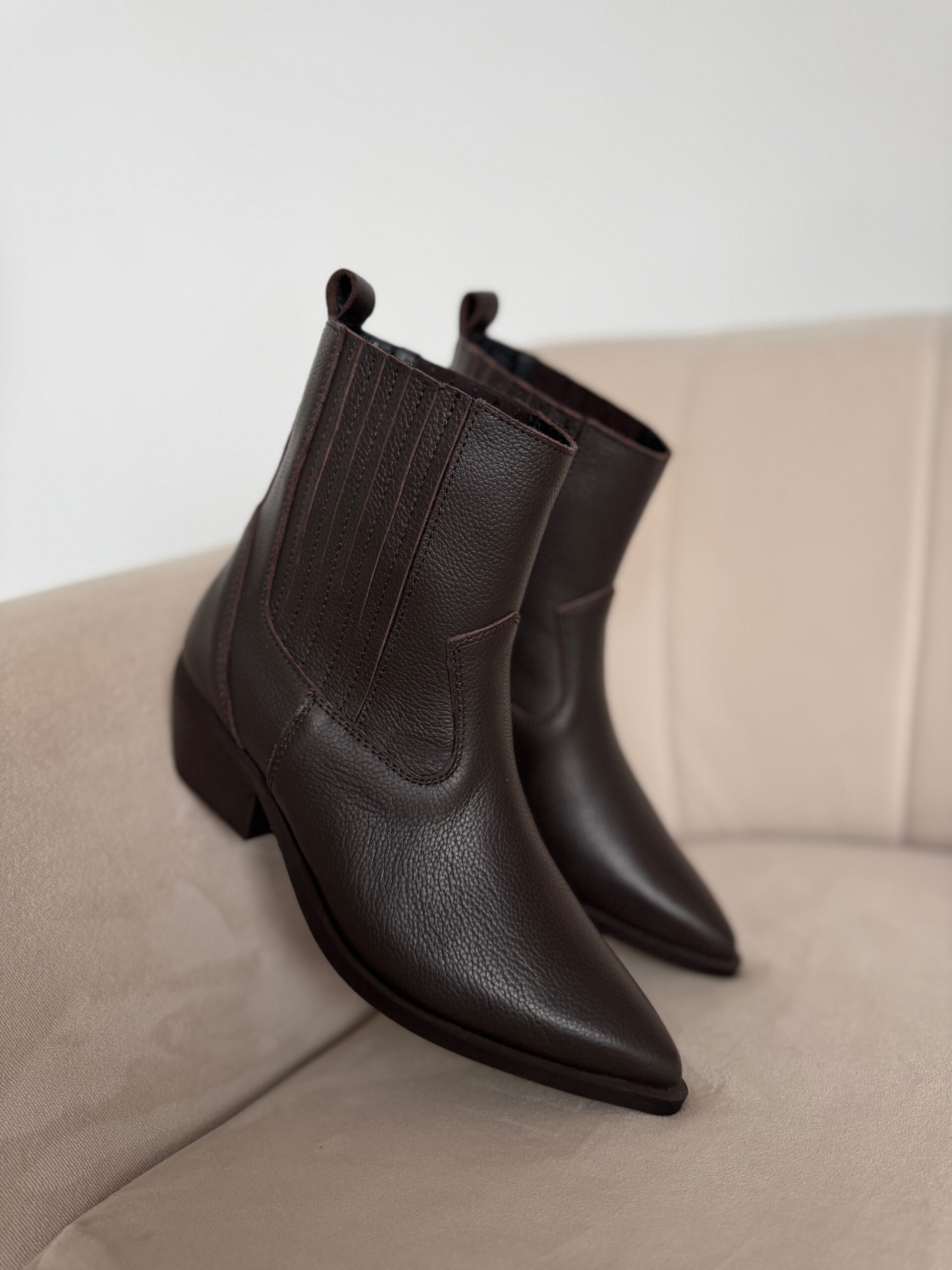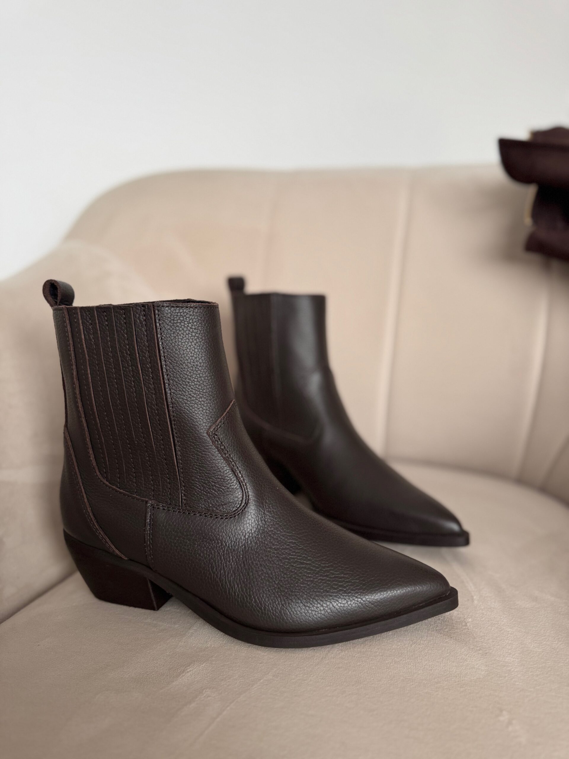 Botki Cabriela zachwycają głębią koloru i subtelnym połyskiem. Klasyczny ale wyrazisty fason z nutą westernowego klimatu uzupełniony został o ozdobne gumy po obu stronach, które nie tylko dodają im wyjątkowego charakteru, ale też sprawiają, że zakładanie i noszenie staje się niezwykle wygodne.