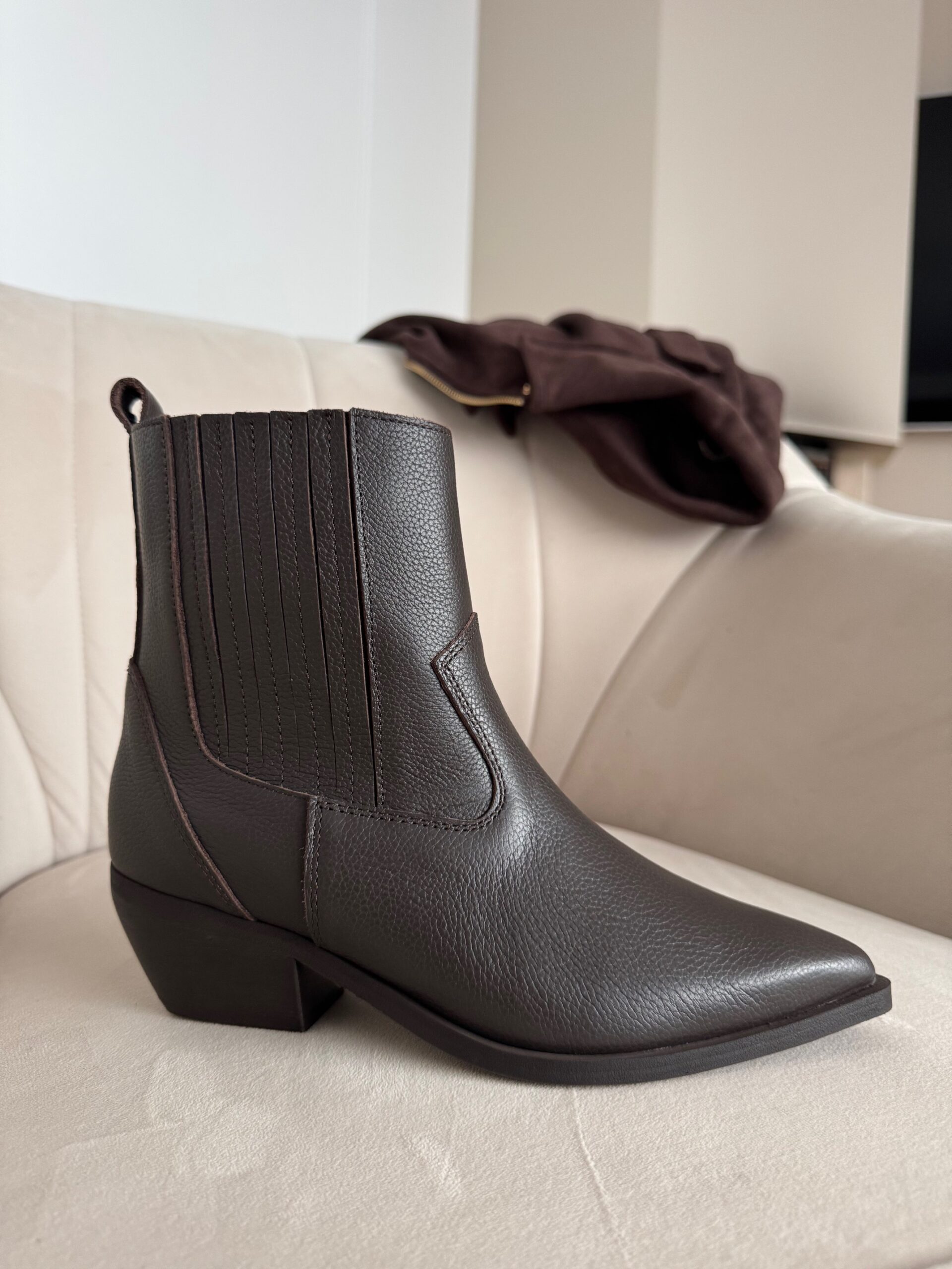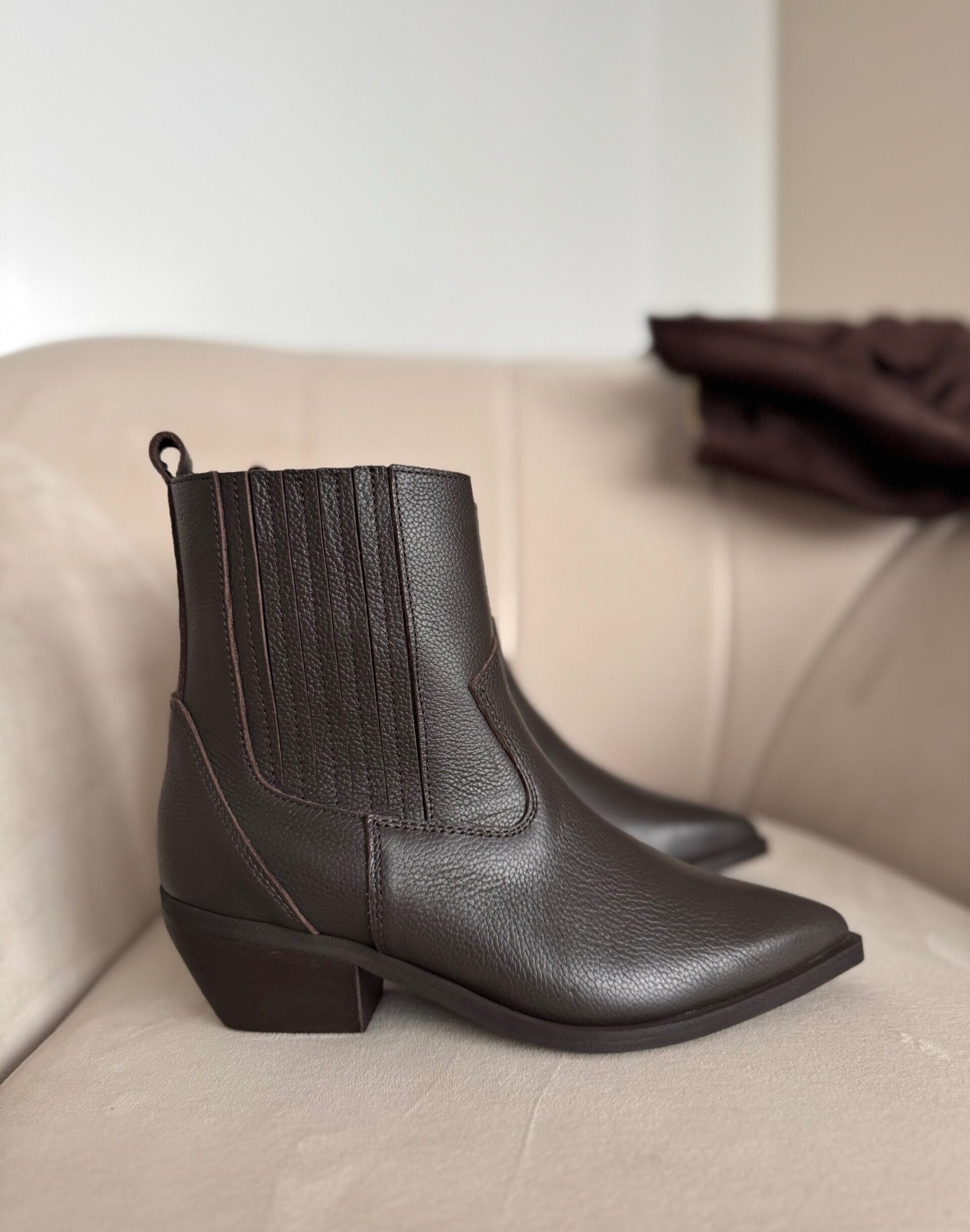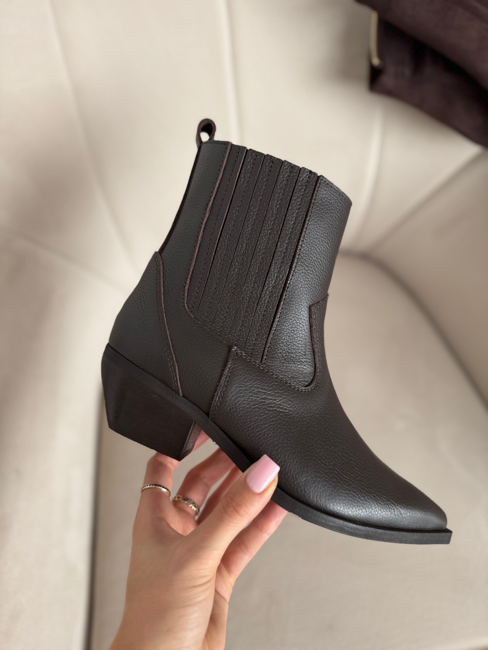 Botki Cabriela zachwycają głębią koloru i subtelnym połyskiem. Klasyczny ale wyrazisty fason z nutą westernowego klimatu uzupełniony został o ozdobne gumy po obu stronach, które nie tylko dodają im wyjątkowego charakteru, ale też sprawiają, że zakładanie i noszenie staje się niezwykle wygodne.