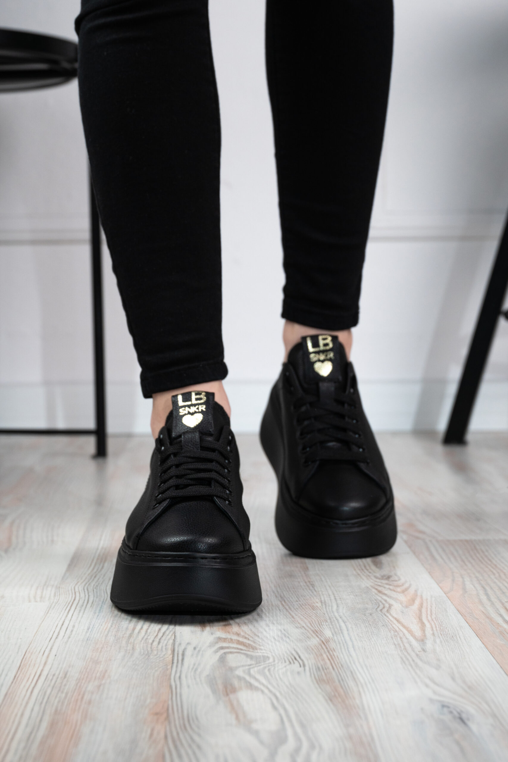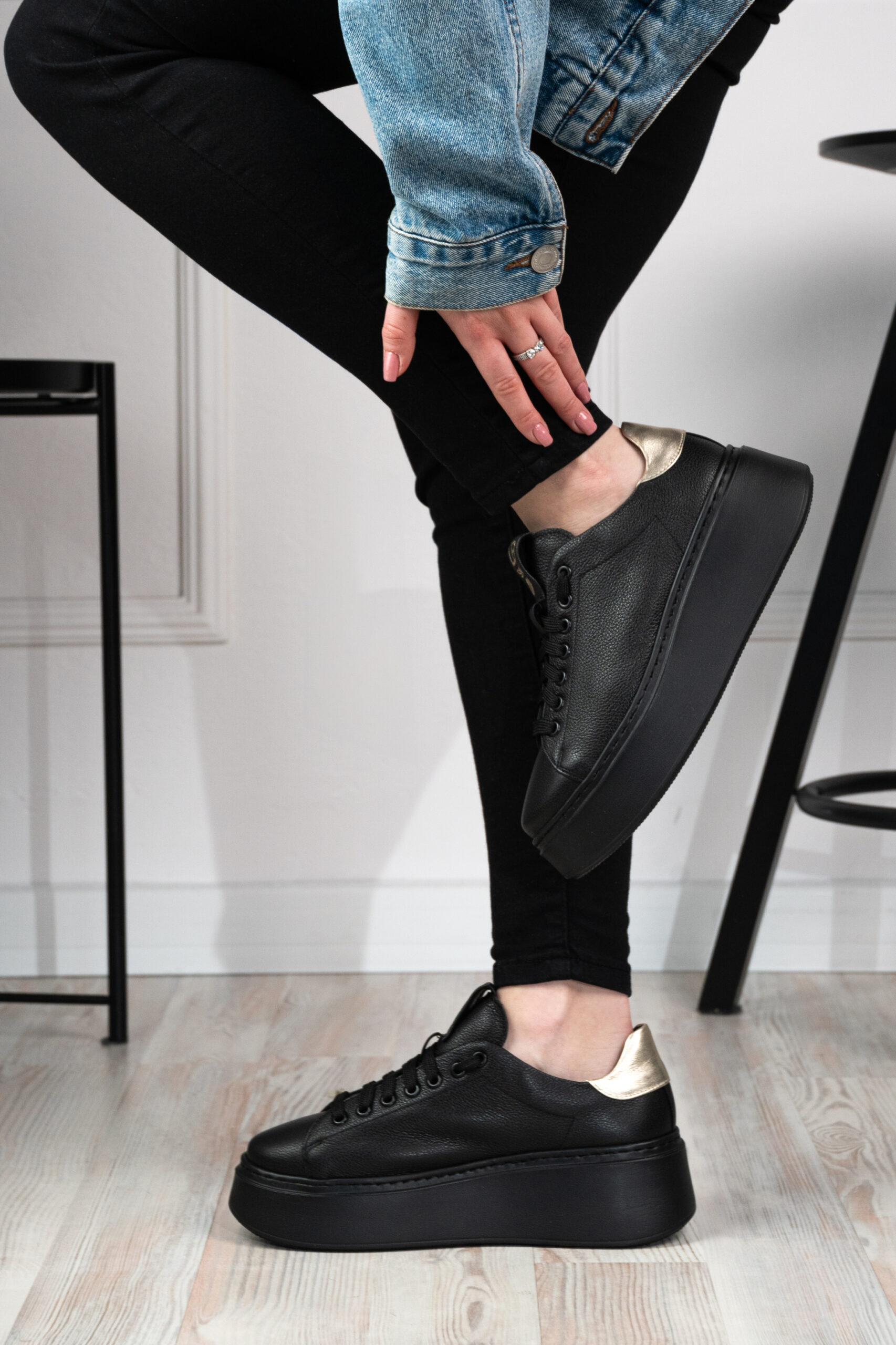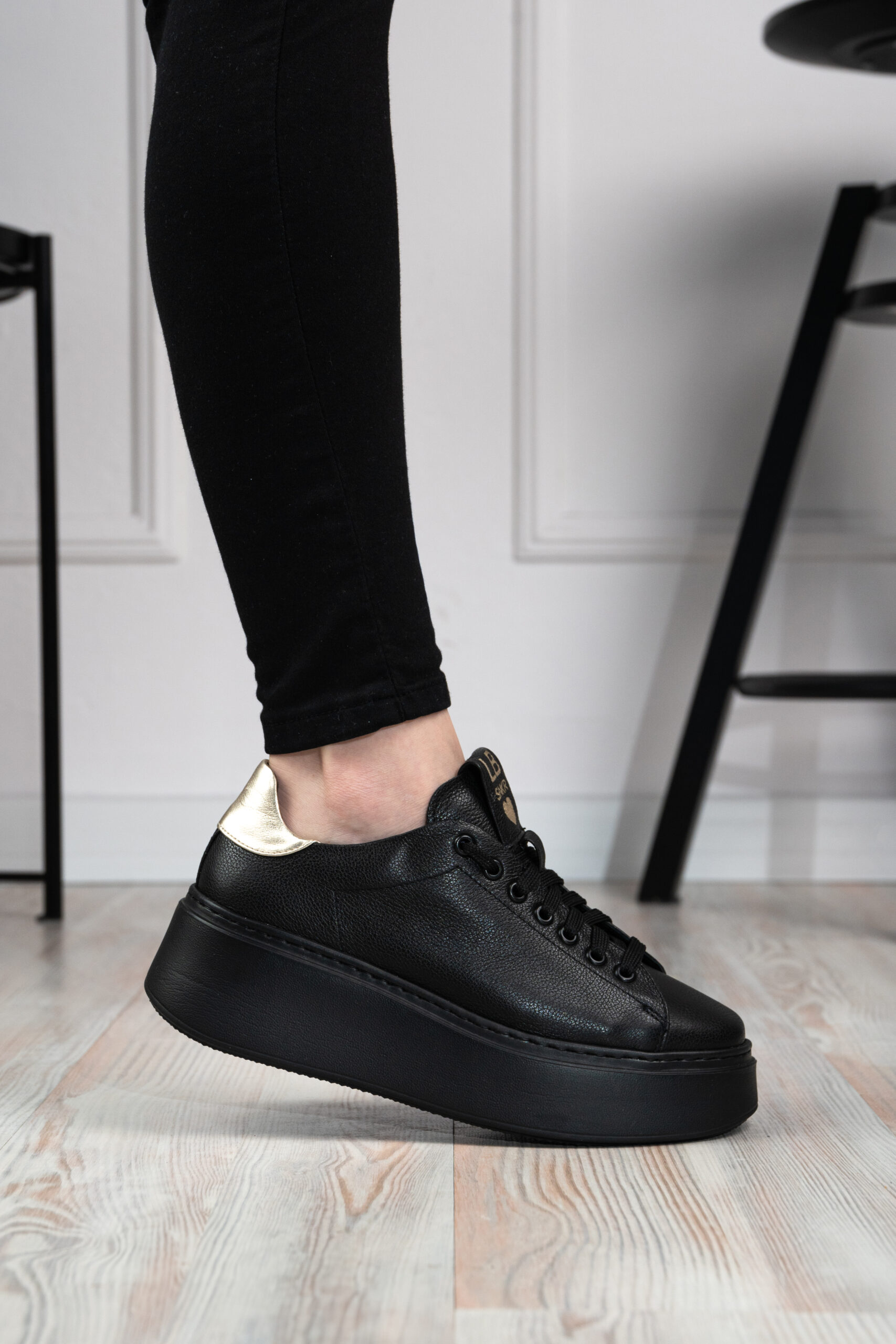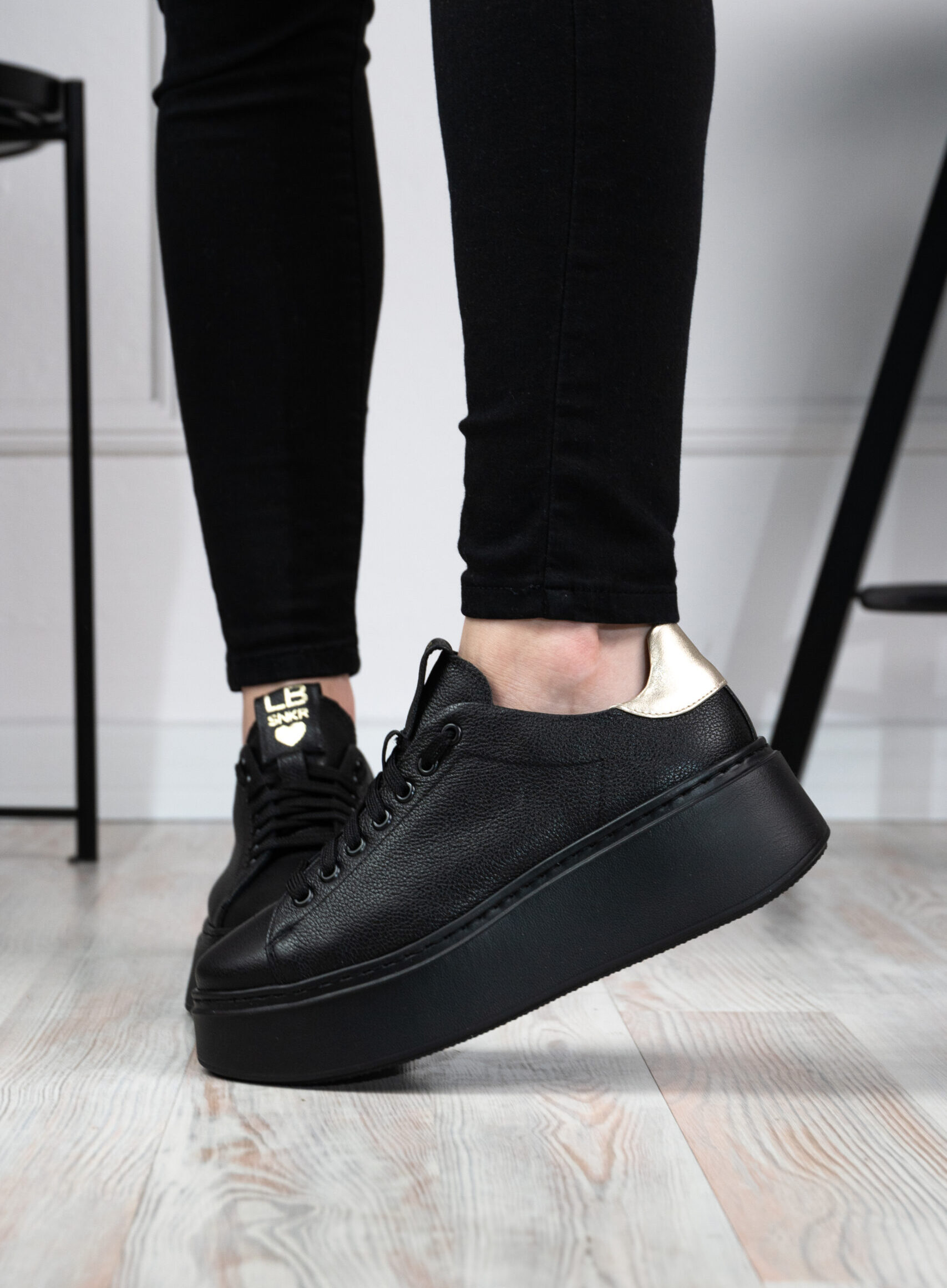 Sneakersy Laila czarne z delikatną złotą wstawką na pięcie to must have w garderobie każdej miłośniczki mody.