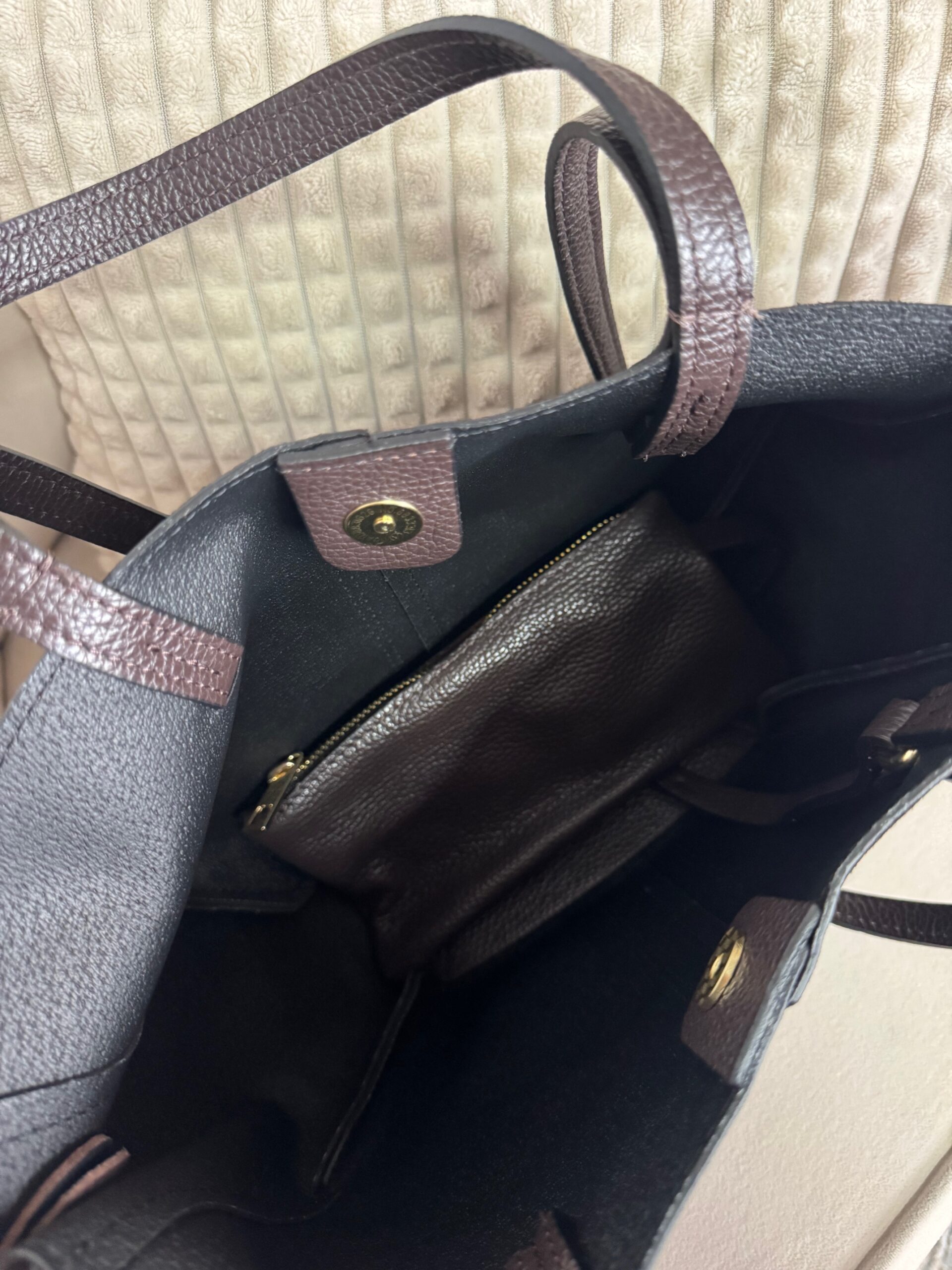 Torebka Ellen skórzana z wkładem. Elegancka i praktyczna torebka wykonana z naturalnej skóry, idealna na co dzień i wyjątkowe okazje. W środku znajduje się wyjmowany wkład/kosmetyczka, który ułatwia organizację i przechowywanie drobiazgów.