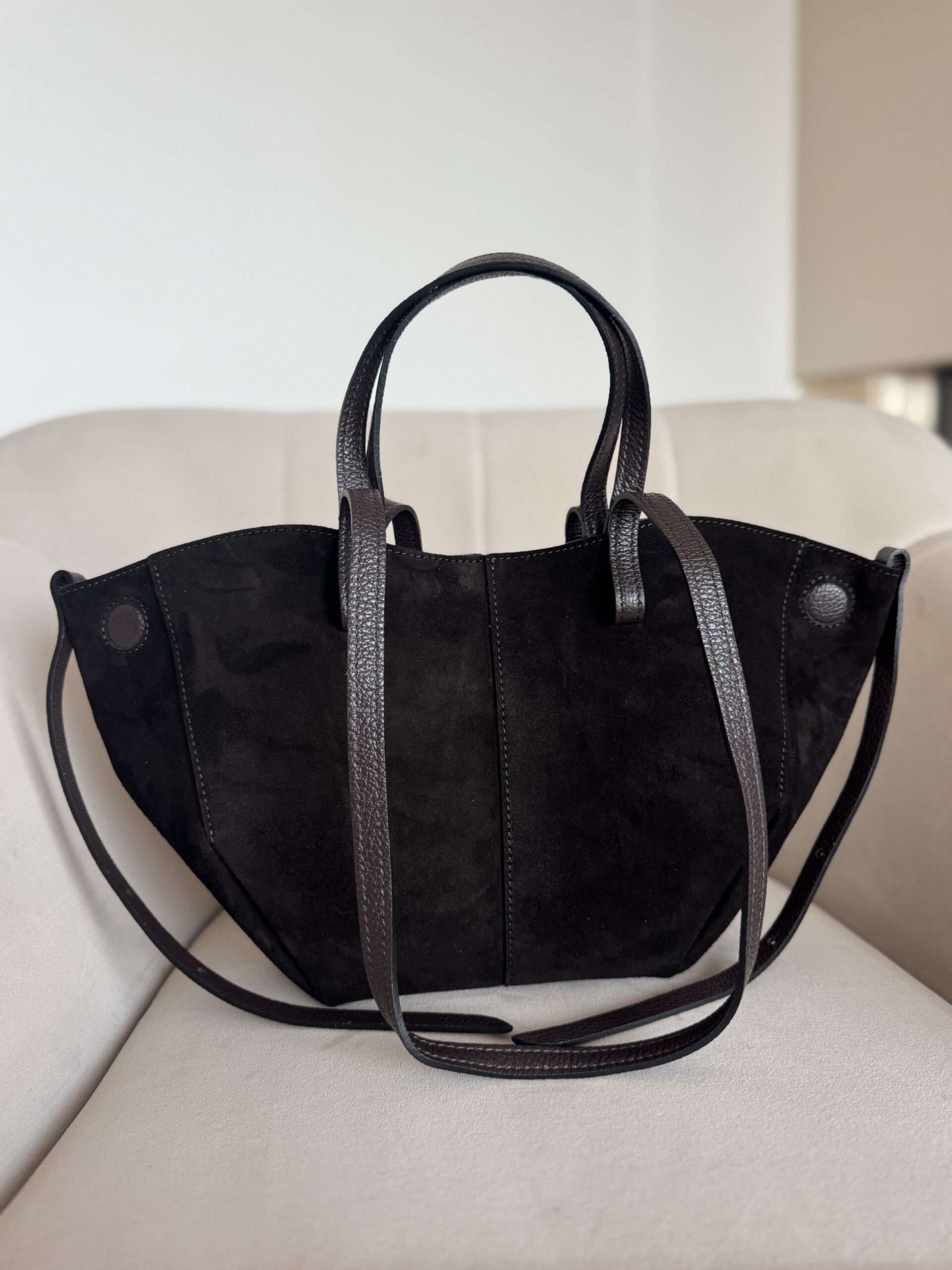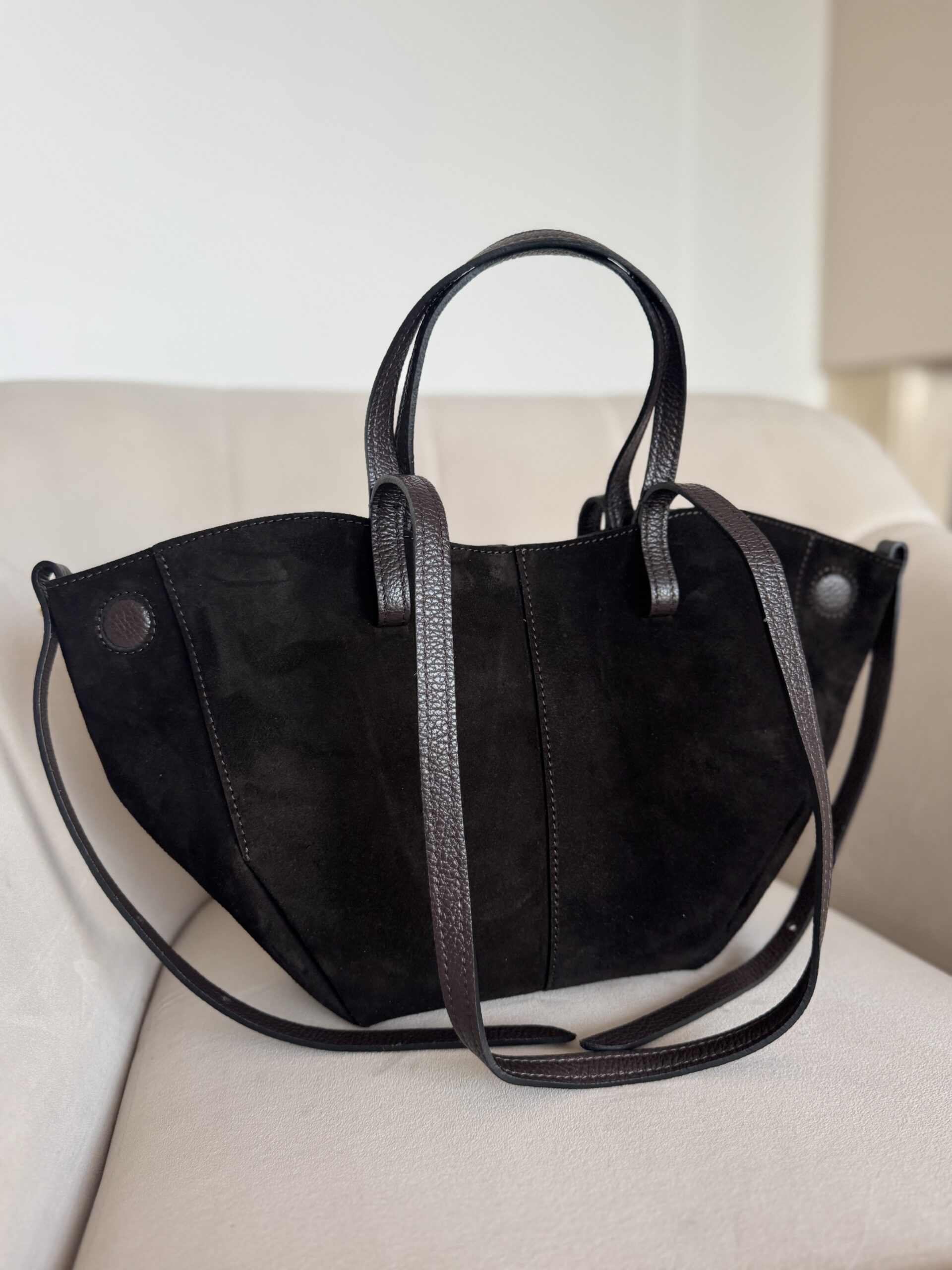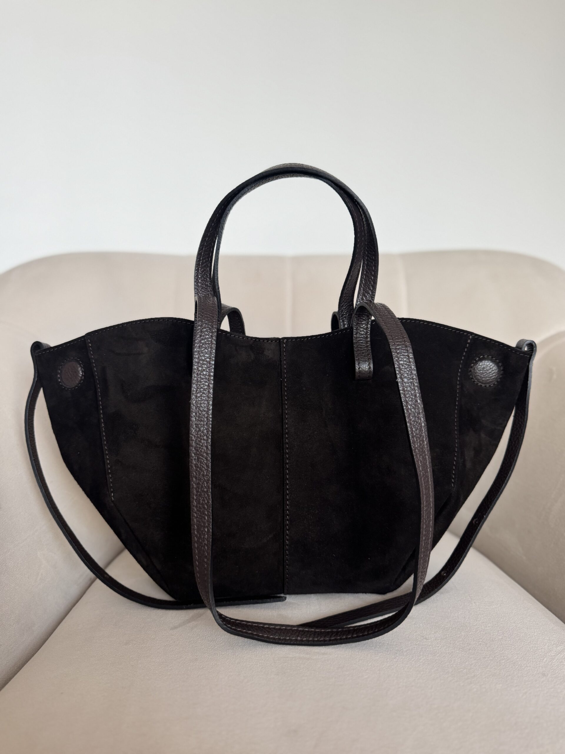 Dłuższe rączki pozwalają wygodnie nosić ją na ramieniu, a boczne ścianki można rozłożyć lub złożyć – w zależności od tego, ile rzeczy chcesz ze sobą zabrać. Lekka, pojemna i niezwykle funkcjonalna, stanie się Twoim ulubionym dodatkiem do każdej stylizacji.