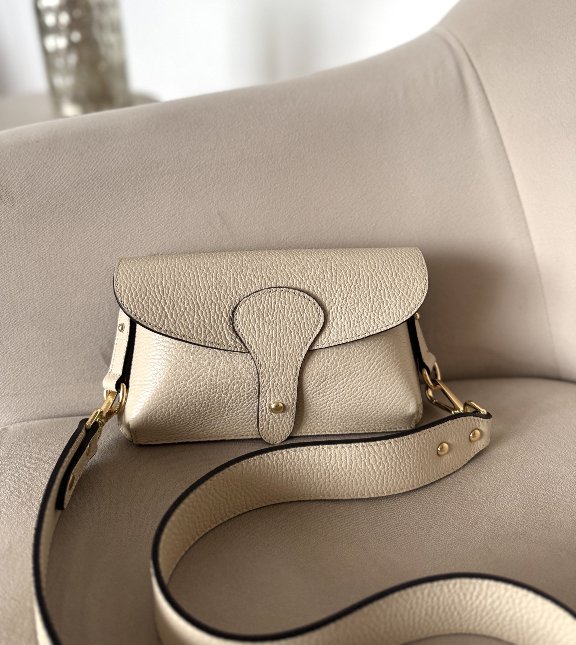Torebka skórzana Noa listonoszka w kolorze beżowym – elegancja w minimalistycznym wydaniu. Odkryj wyjątkową torebkę damską ze skóry naturalnej, stworzoną we Włoszech z dbałością o każdy detal. Ponadczasowy model, niewielka, lekka i niezwykle praktyczna.