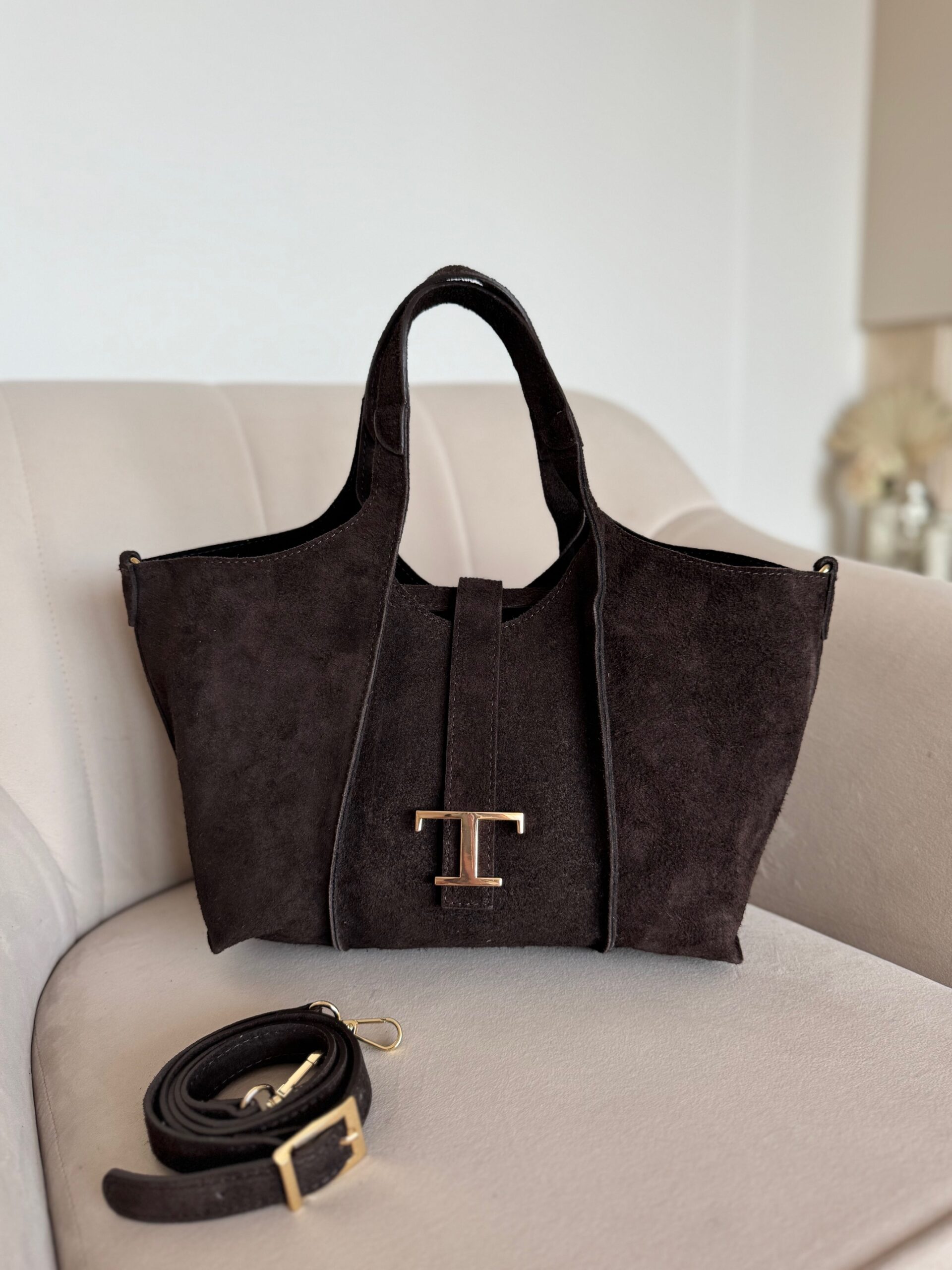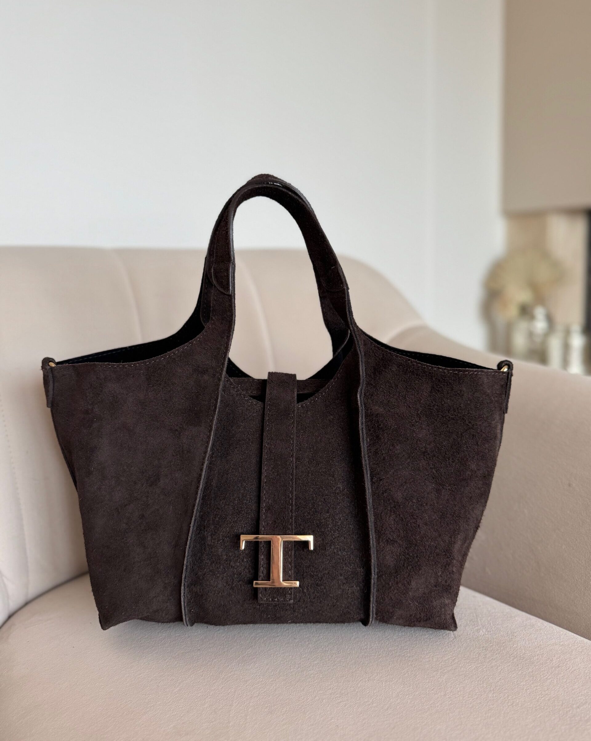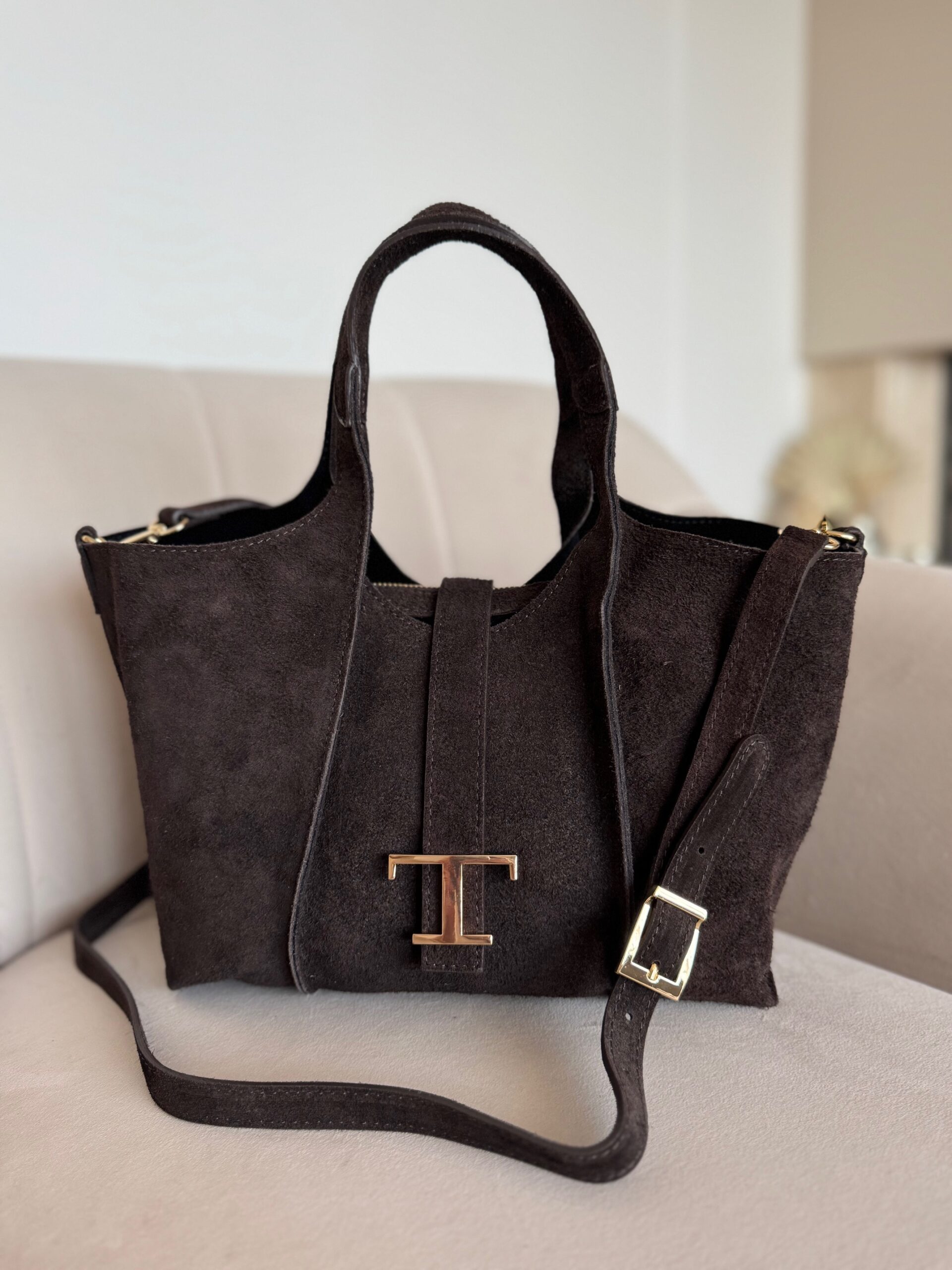 Stylowa i funkcjonalna torebka Thea, którą możesz nosić w dłoni na eleganckich rączkach lub na regulowanym pasku, dopasowując ją do swojego stylu dnia. Jej charakterystycznym detalem jest złota literka „T”, subtelny akcent nadający całości wyjątkowego, kobiecego szyku. Wnętrze torebki zostało zaprojektowane z myślą o praktyczności – znajdziesz tam jedną pojemną przegrodę oraz wyjmowaną kosmetyczkę, która ułatwia utrzymanie porządku i może służyć jako niezależna mini-torebka. To model, który łączy włoski design, jakość wykonania i ponadczasową elegancję – idealny wybór na każdy dzień.
