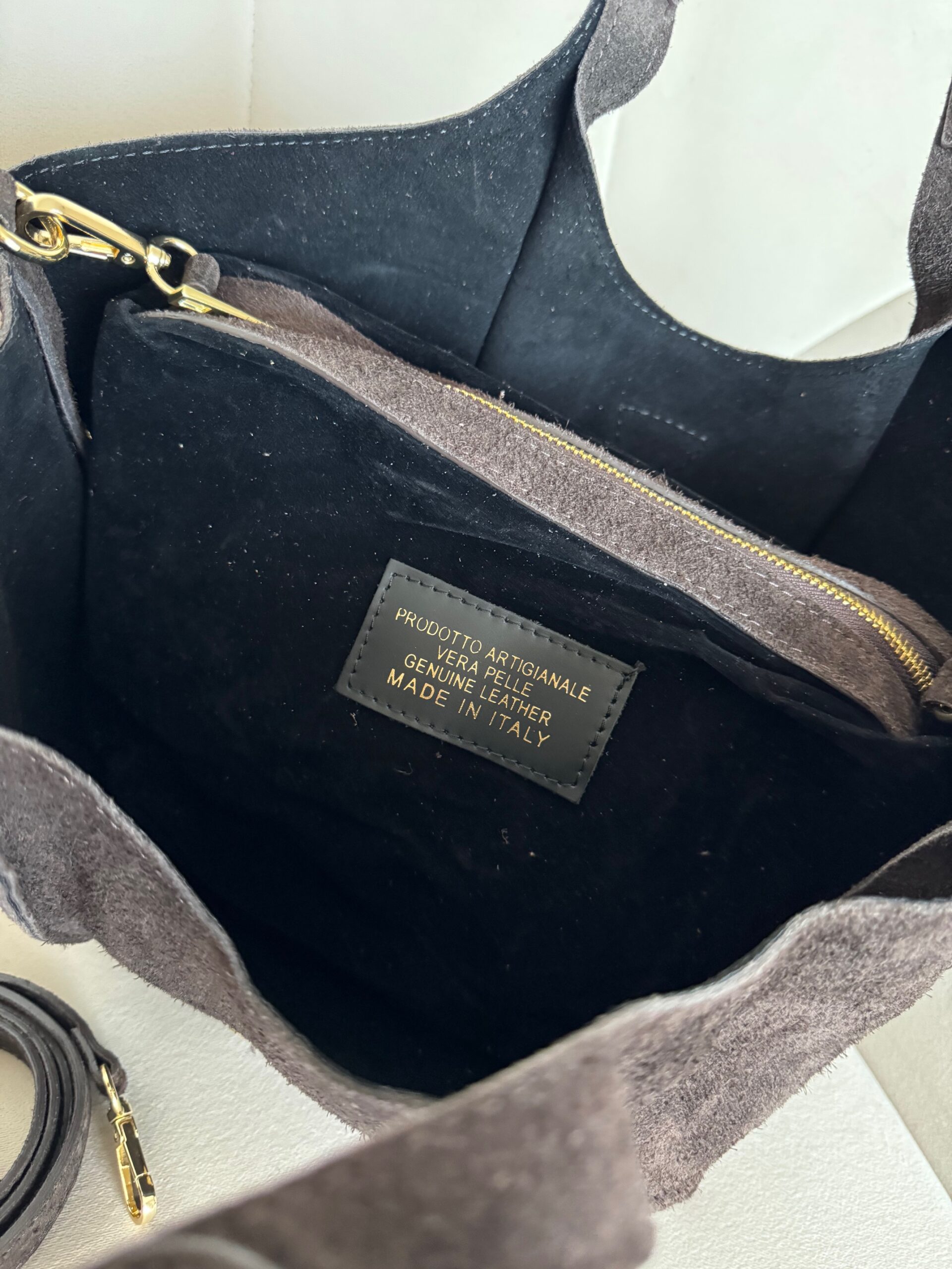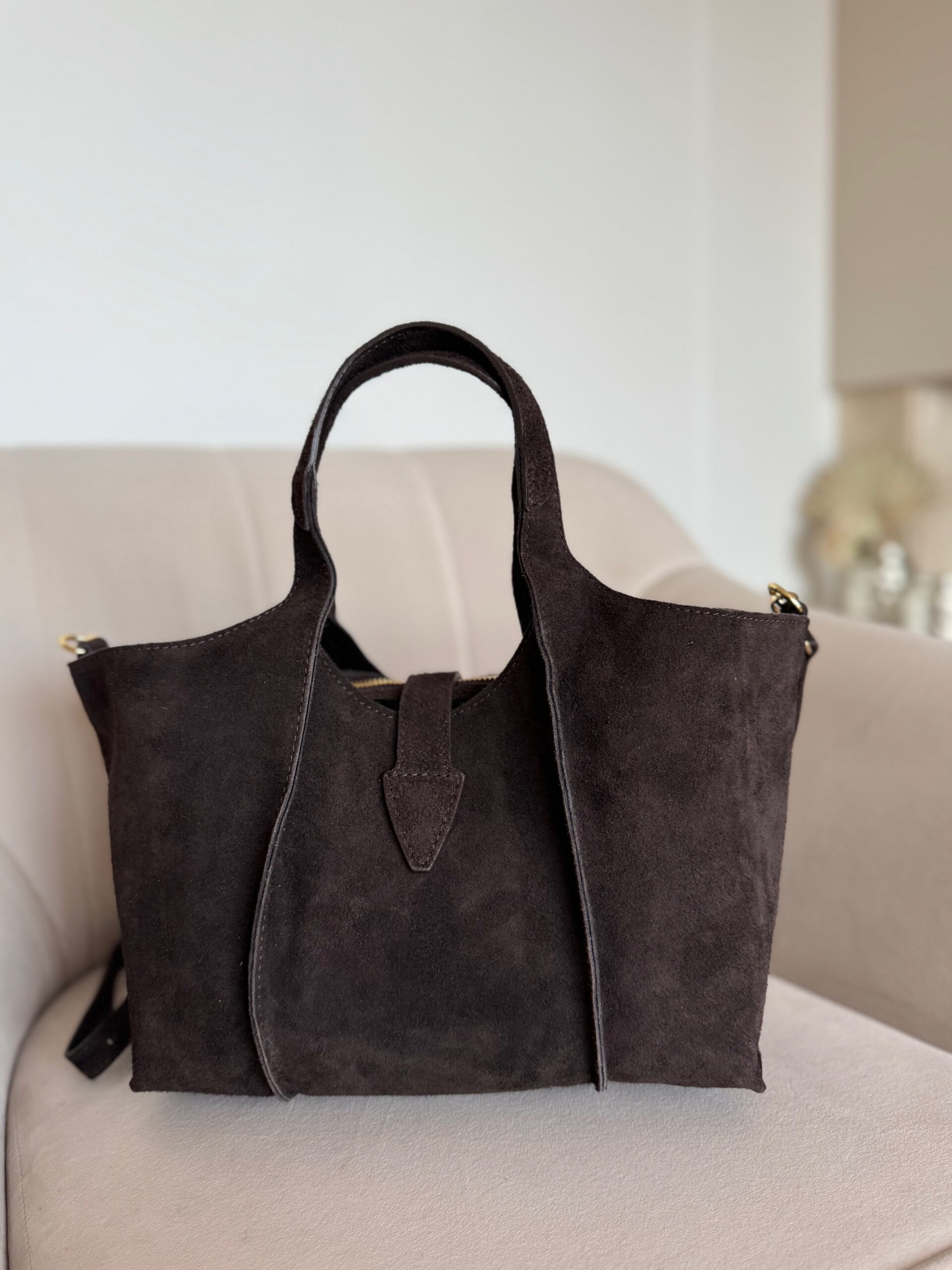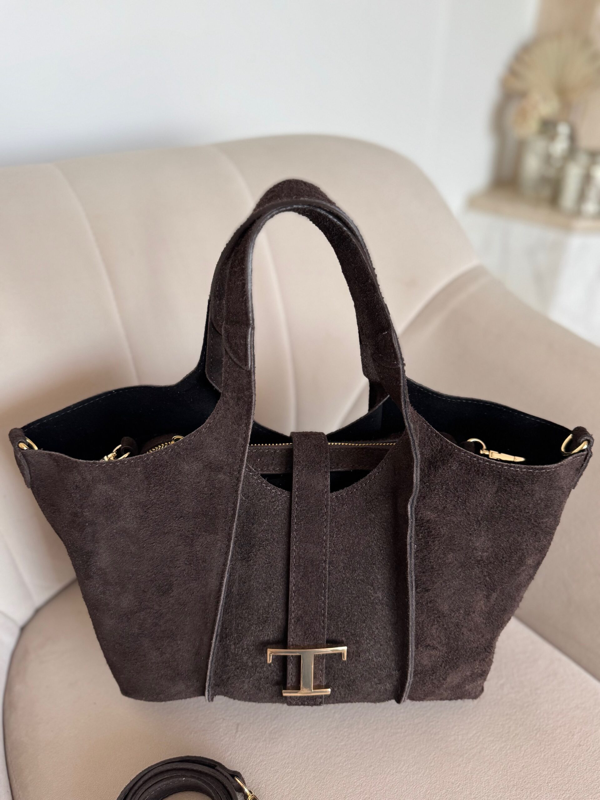 Stylowa i funkcjonalna torebka Thea, którą możesz nosić w dłoni na eleganckich rączkach lub na regulowanym pasku, dopasowując ją do swojego stylu dnia. Jej charakterystycznym detalem jest złota literka „T”, subtelny akcent nadający całości wyjątkowego, kobiecego szyku. Wnętrze torebki zostało zaprojektowane z myślą o praktyczności – znajdziesz tam jedną pojemną przegrodę oraz wyjmowaną kosmetyczkę, która ułatwia utrzymanie porządku i może służyć jako niezależna mini-torebka. To model, który łączy włoski design, jakość wykonania i ponadczasową elegancję – idealny wybór na każdy dzień.